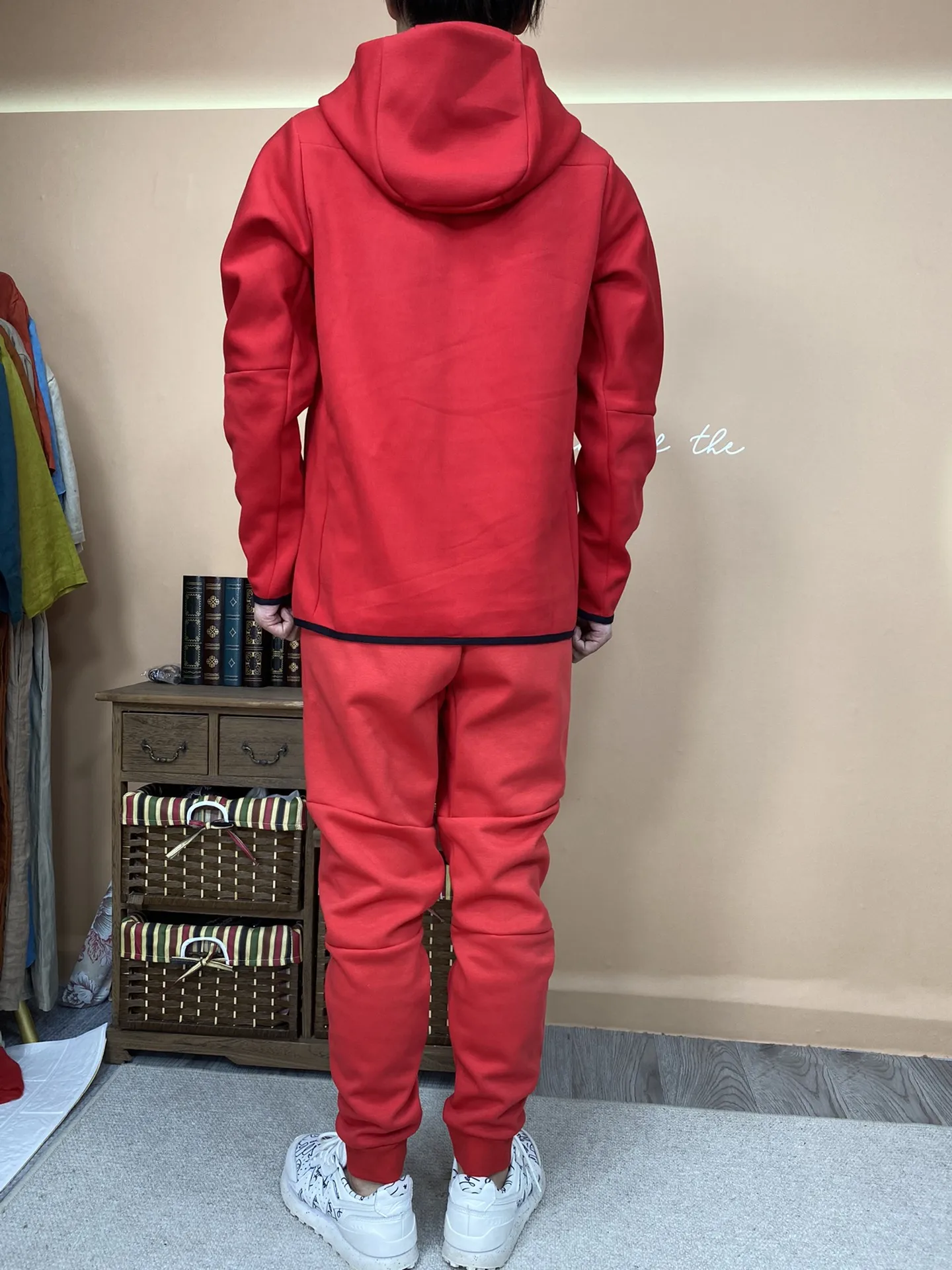 Custom Logo RED Men's Jogging two piece set Suit Sportswear Casual Tracksuit Men Suits